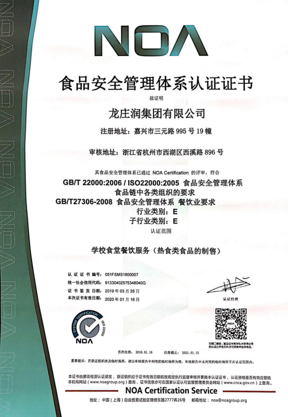 食品安全管理體系認證證書